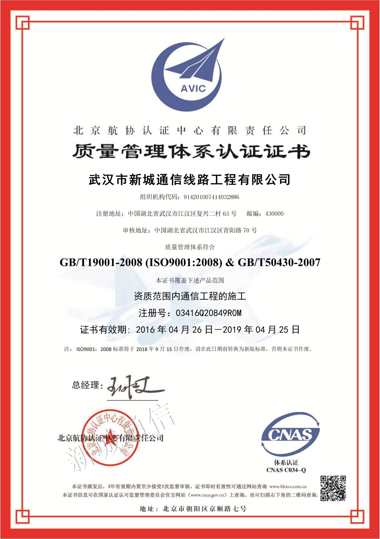 质量治理系统认证证书